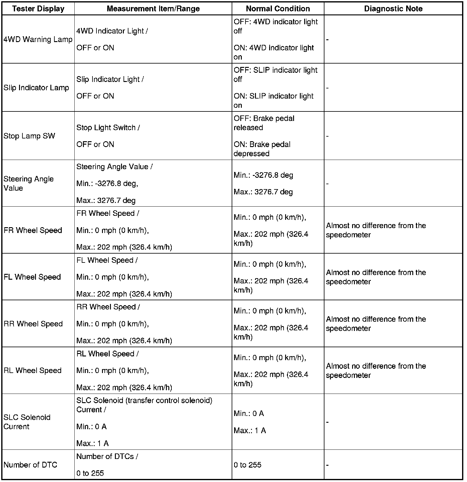 1. DATA LIST OF 4WD CONTROL ECU