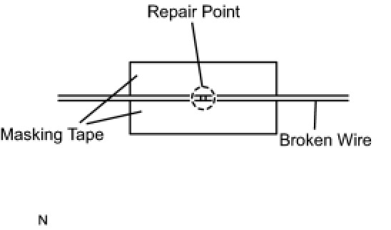 (b) Place the masking tape along both sides of the wire.