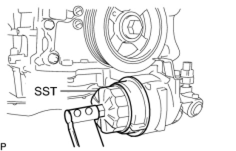 (a) Using SST, remove the oil filter cap.