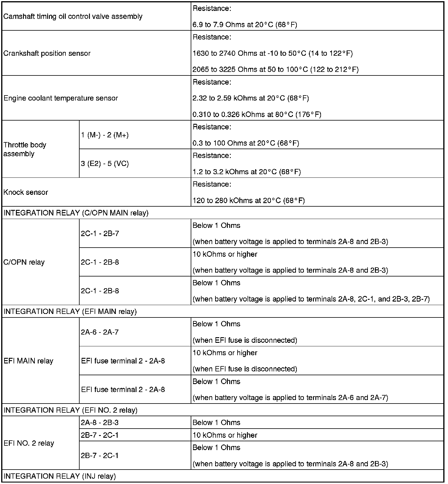 SERVICE SPECIFICATIONS: 2GR-FSE ENGINE CONTROL SYSTEM: SERVICE DATA