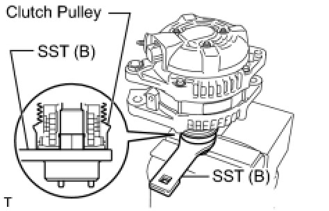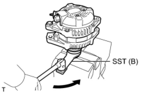 (f) Tighten the pulley by turning SST (B) in the direction shown in the illustration.