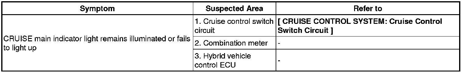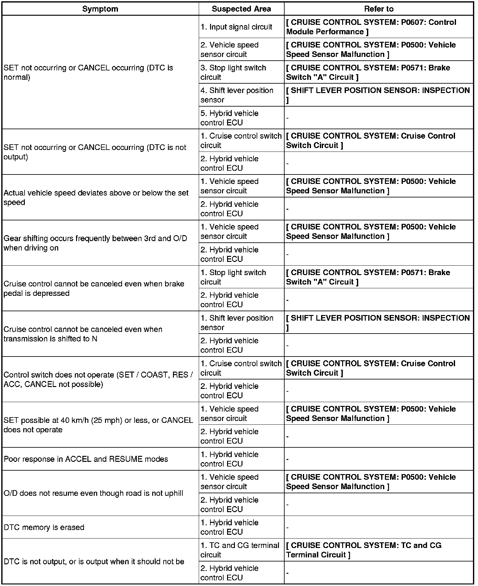 CRUISE CONTROL: CRUISE CONTROL SYSTEM: PROBLEM SYMPTOMS TABLE