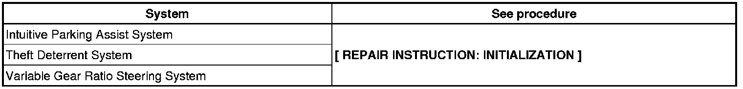 When disconnecting the cable from the negative (-) battery terminal, initialize the following systems after the cable is reconnected.