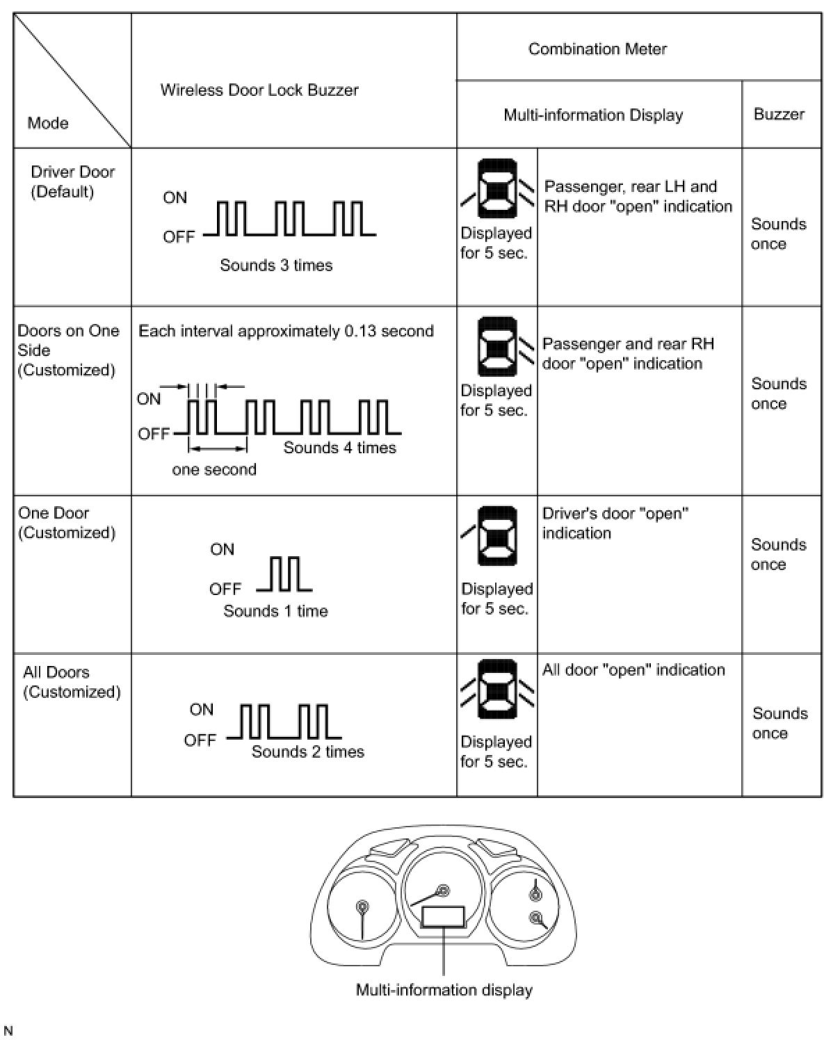(c) The certification ECU sounds the buzzers of the wireless door lock buzzer and combination meter to inform the user that the mode has been switched.
