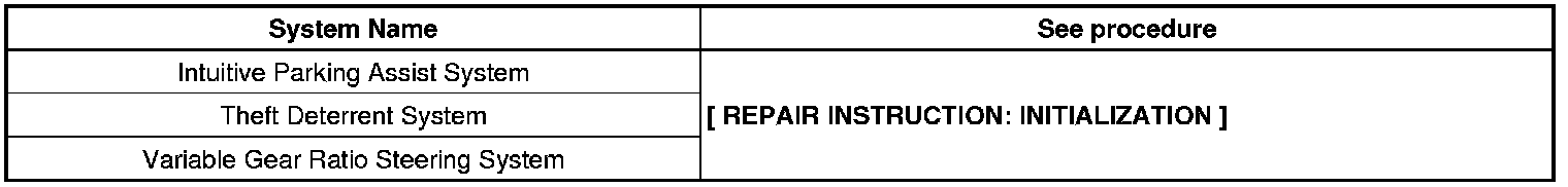 When disconnecting the cable from the negative (-) battery terminal, initialize the following systems after the cable is reconnected.