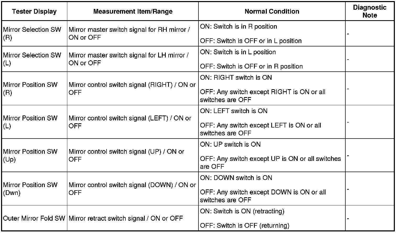 MIRROR: POWER MIRROR CONTROL SYSTEM: DATA LIST / ACTIVE TEST