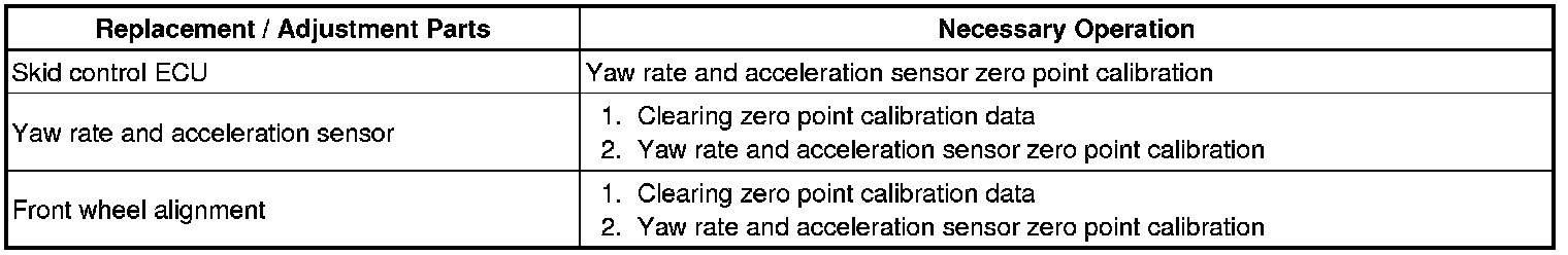 - After replacing the VSC relevant components or performing "Front wheel alignment adjustment", clear and read the sensor calibration data.