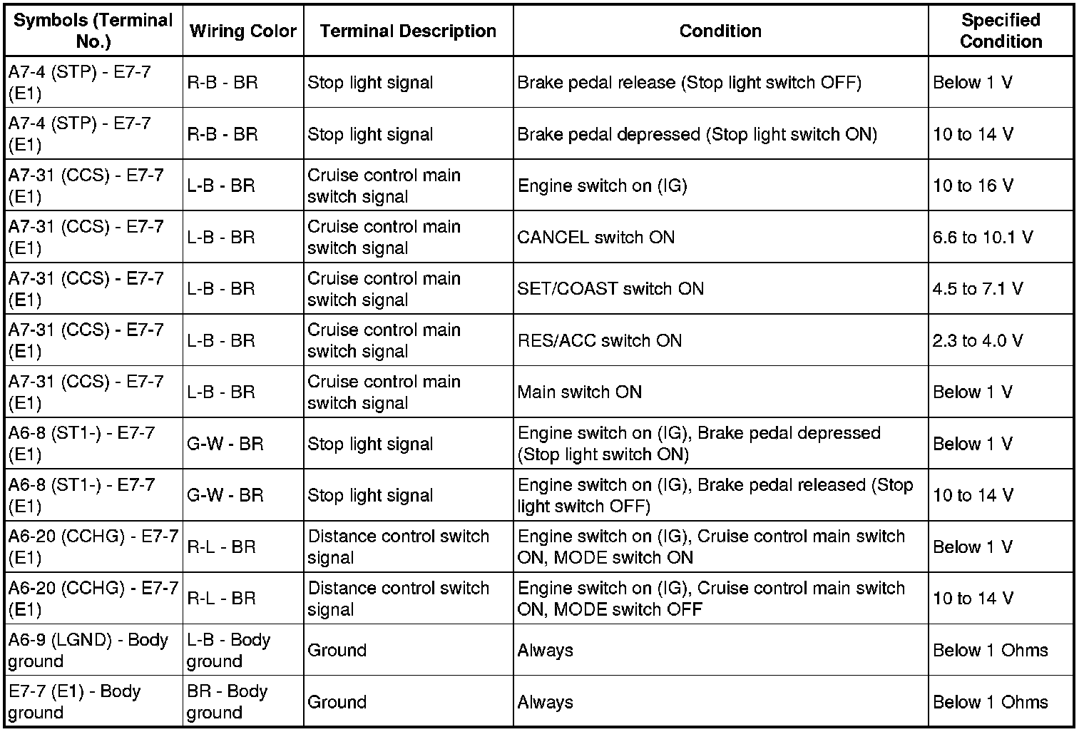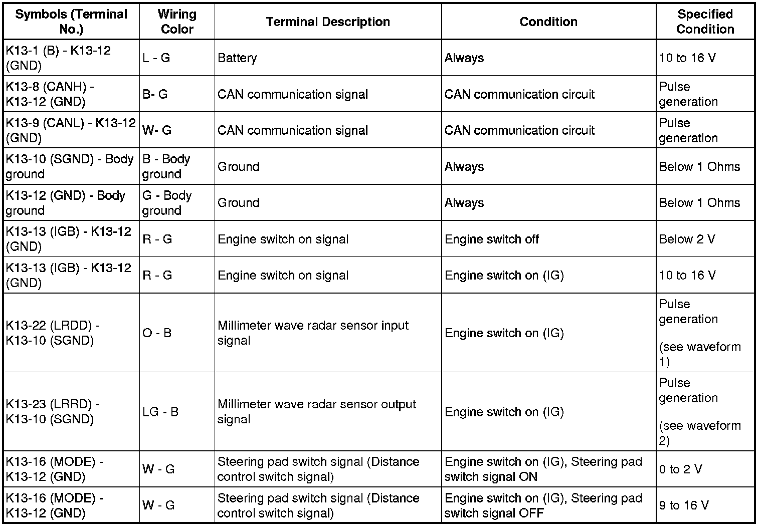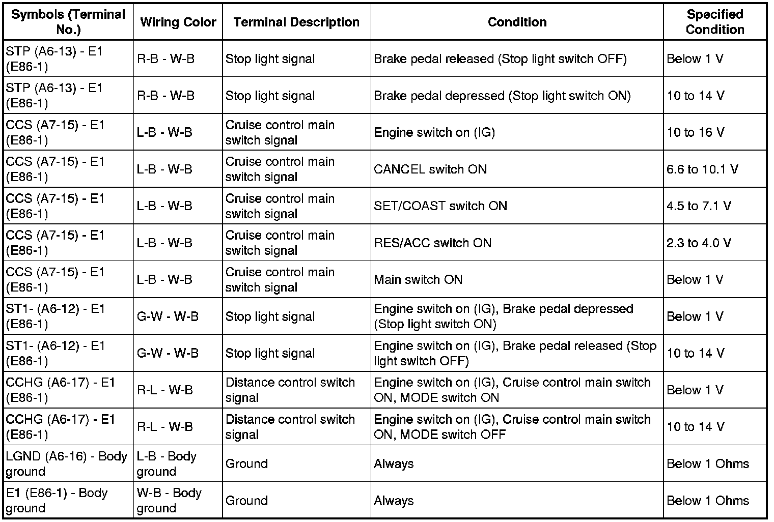 CRUISE CONTROL: DYNAMIC RADAR CRUISE CONTROL SYSTEM: TERMINALS OF ECU