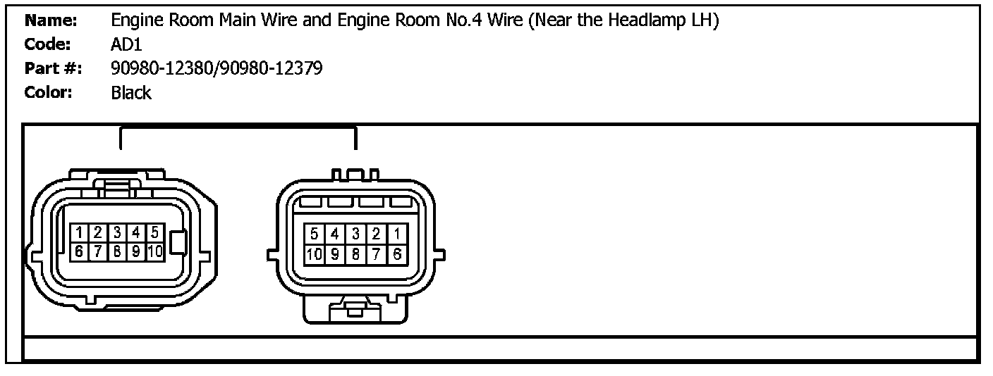 AD1 (Engine Room Main Wire and Engine Room No.4 Wire (Near the Headlamp LH)):
