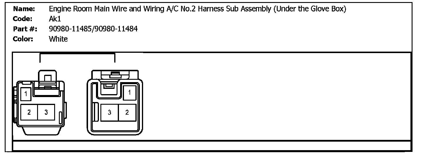 Ak1 (Engine Room Main Wire and Wiring A/C No.2 Harness Sub Assembly (Under the Glove Box)):