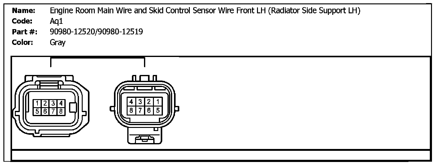 Aq1 (Engine Room Main Wire and Skid Control Sensor Wire Front LH (Radiator Side Support LH)):