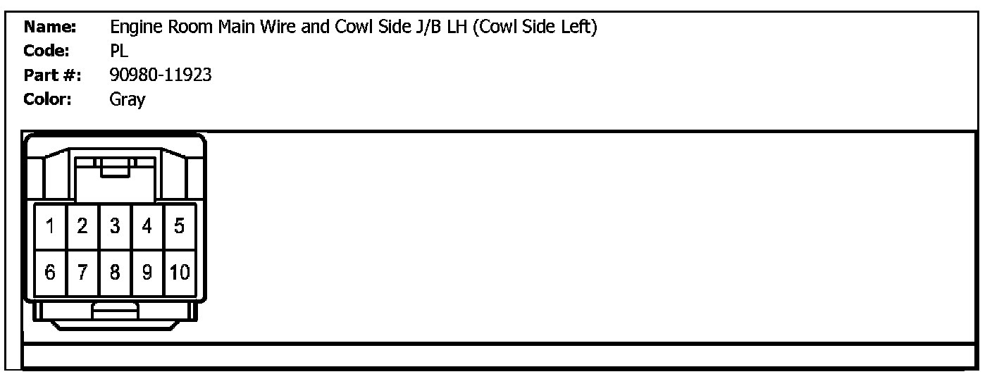 PL (Engine Room Main Wire and Cowl Side J/B LH (Cowl Side Left)):