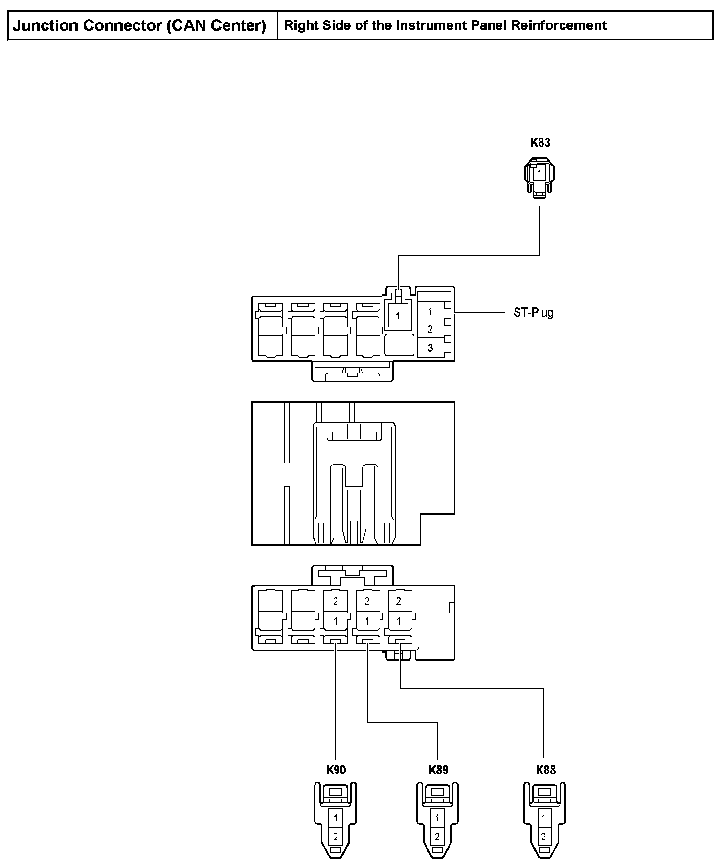 Junction Connector (CAN Center) - Right Side Of The Instrument Panel Reinforcement: