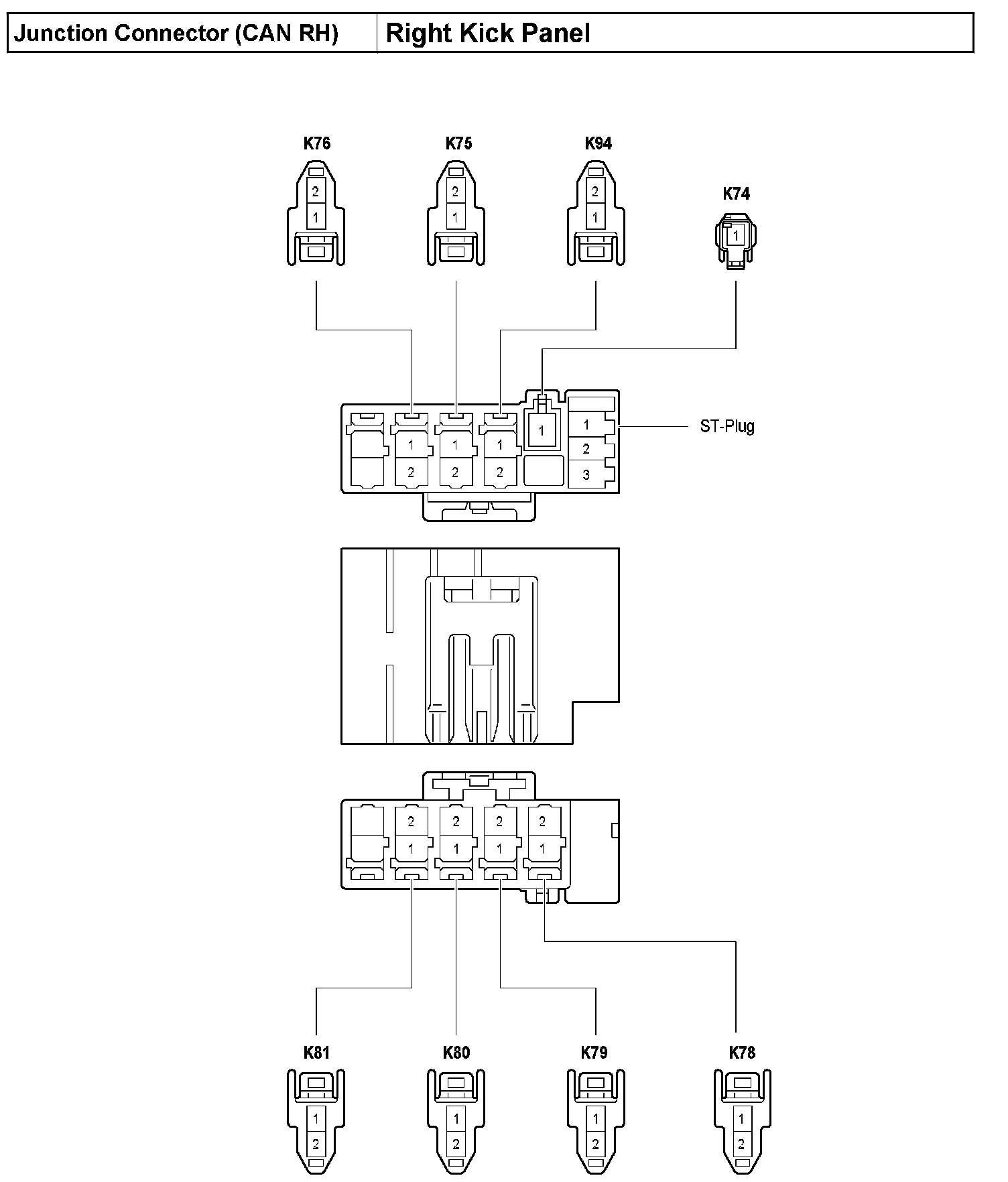 Junction Connector (CAN RH) - Right Kick Panel: