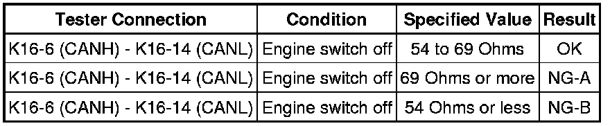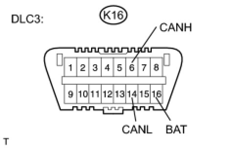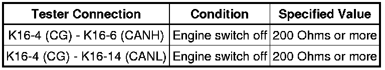 When any DTC for the CAN communication system is output, first measure the resistance between the terminals of the DLC3 to specify the trouble area, and check that there is no short in the CAN main bus line, between the CAN bus lines, to +B, or to GND.