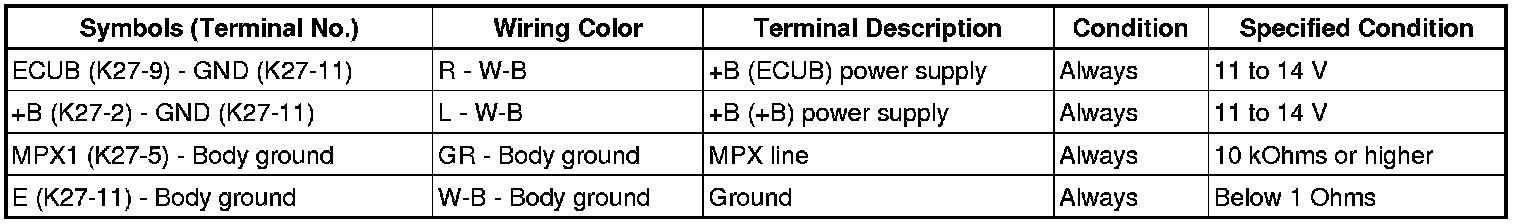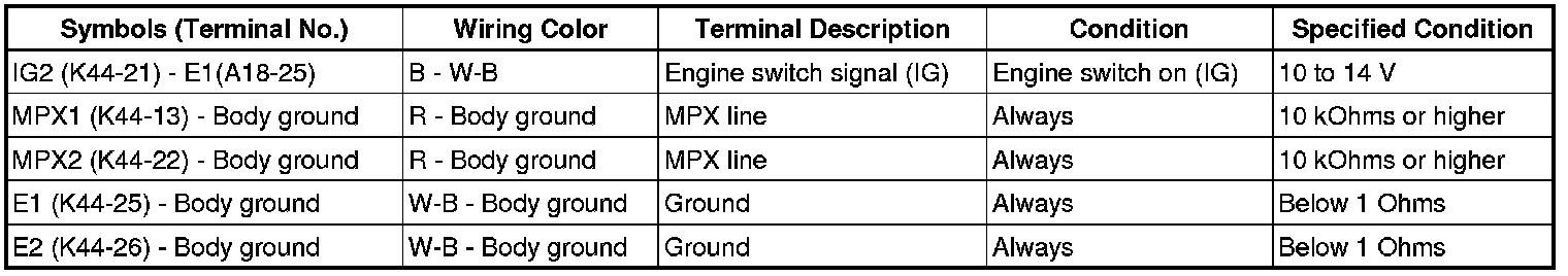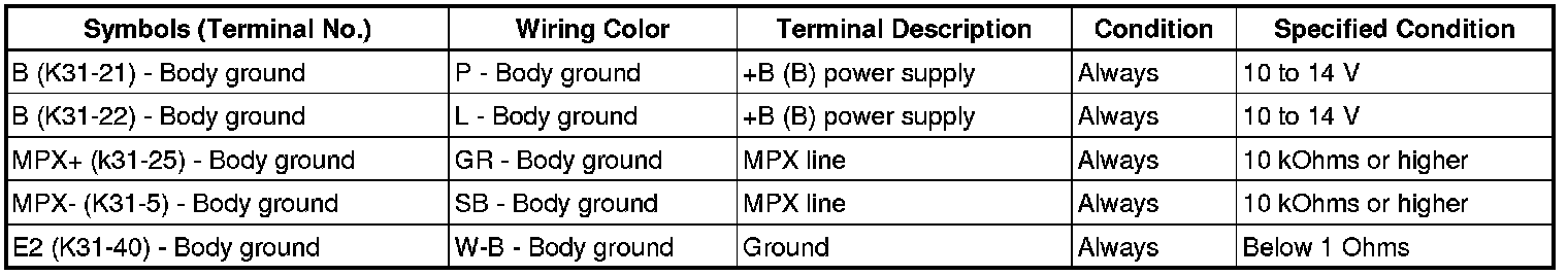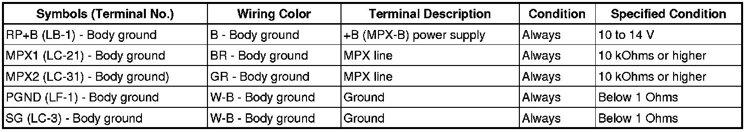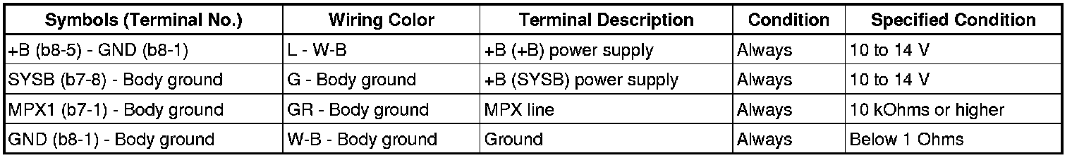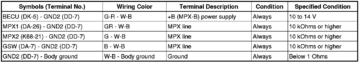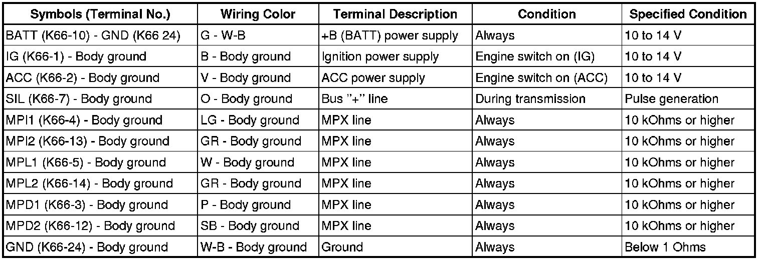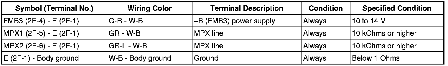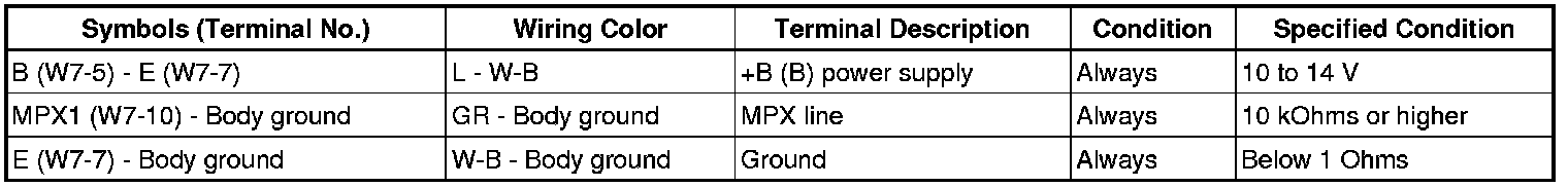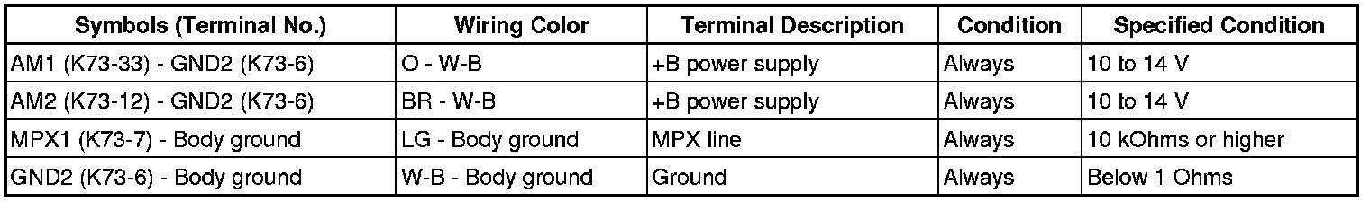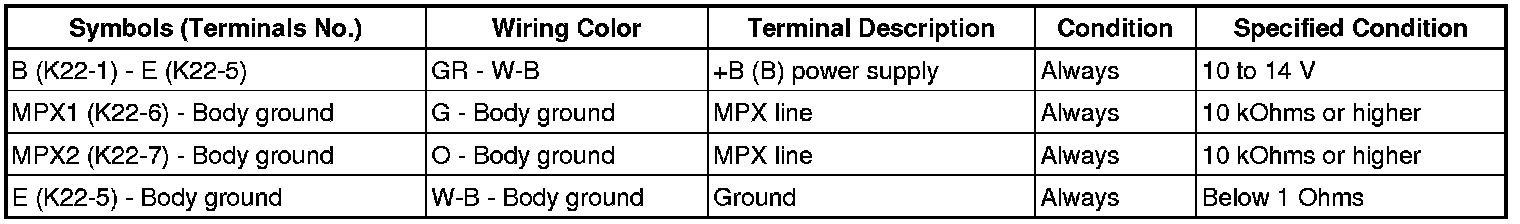 - If the result is not as specified, there may be a malfunction on the wire harness side.
