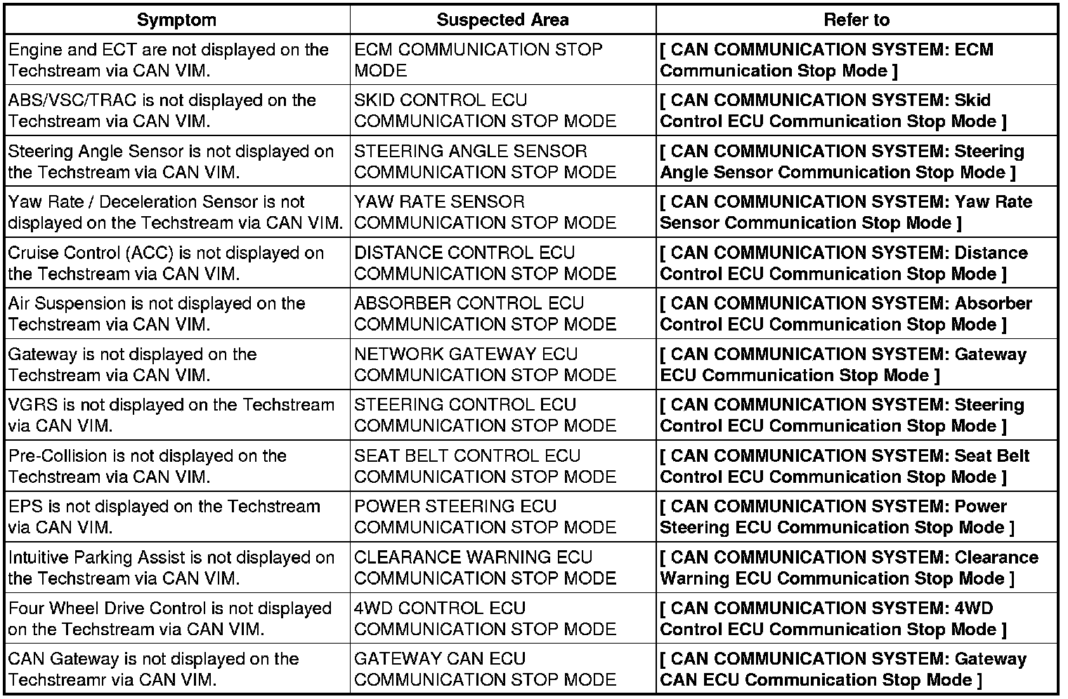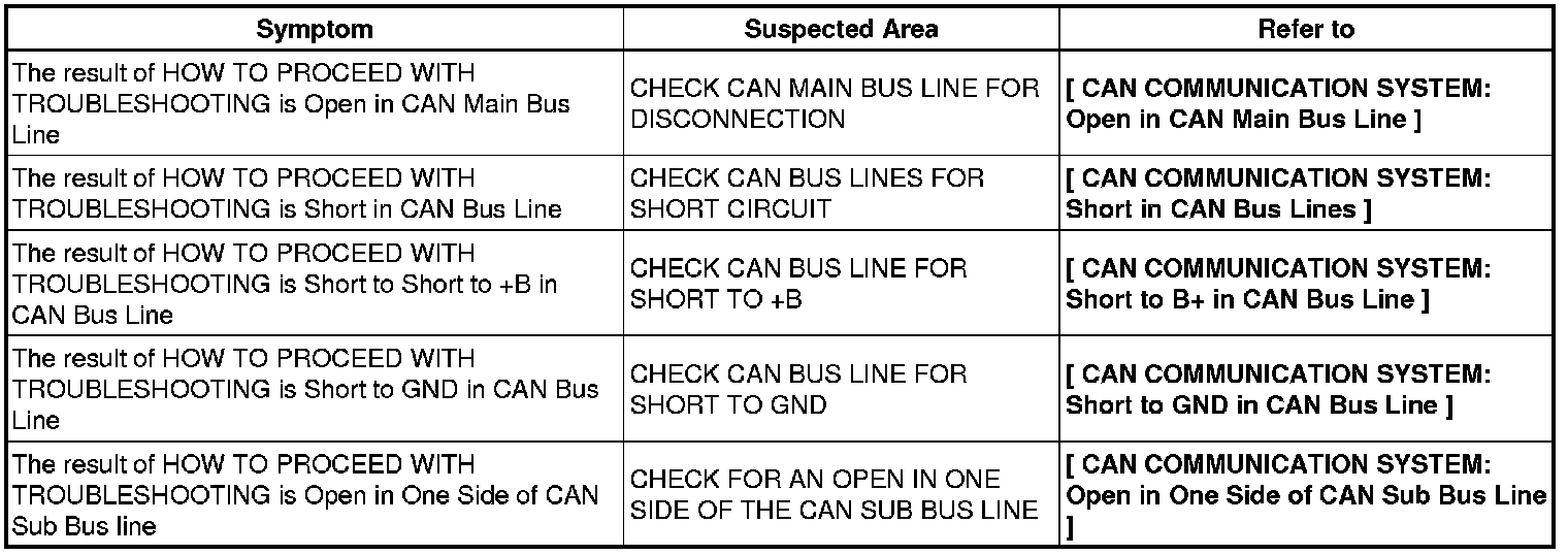 CAN COMMUNICATION: CAN COMMUNICATION SYSTEM: PROBLEM SYMPTOMS TABLE