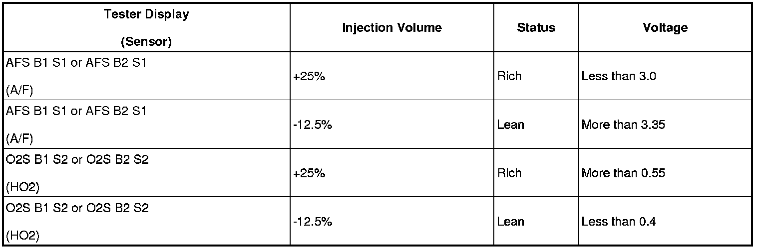 - The Control the Injection Volume for A/F sensor operation lowers the fuel injection volume by 12.5% or increases the injection volume by 25%.