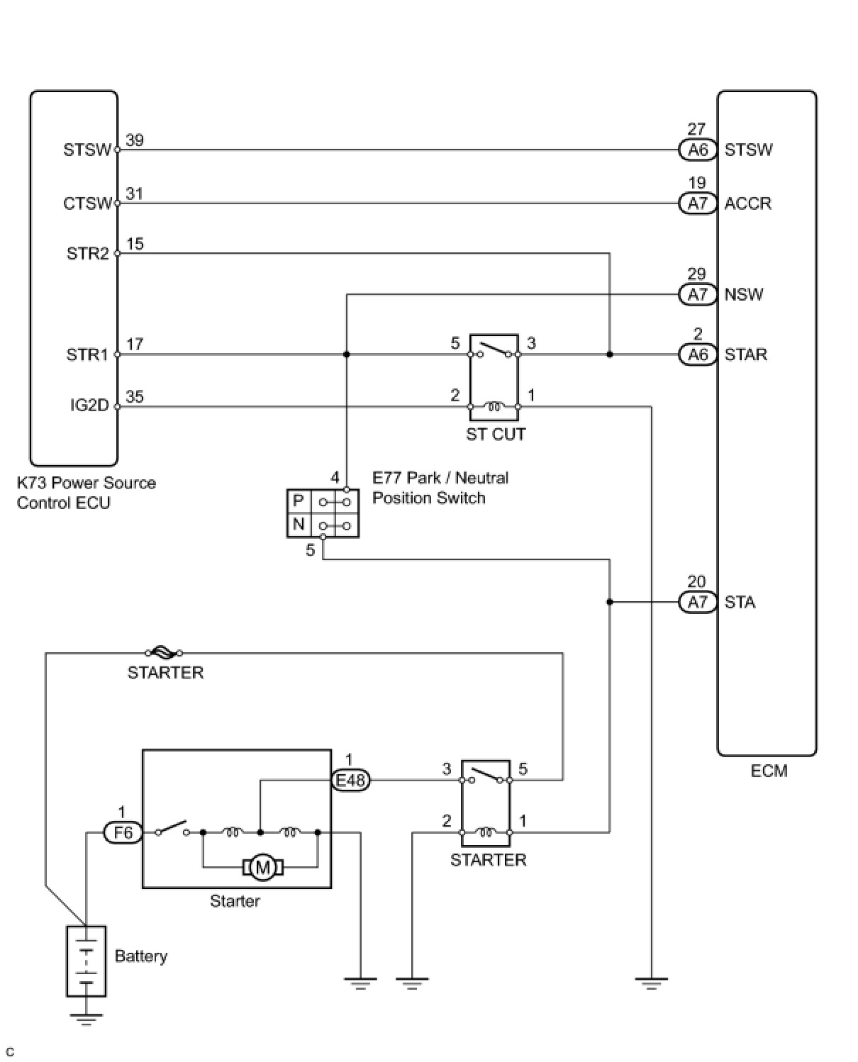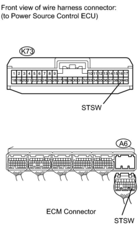 When the engine is cranking, the starter operation signal is sent to the ECM's STA terminal.