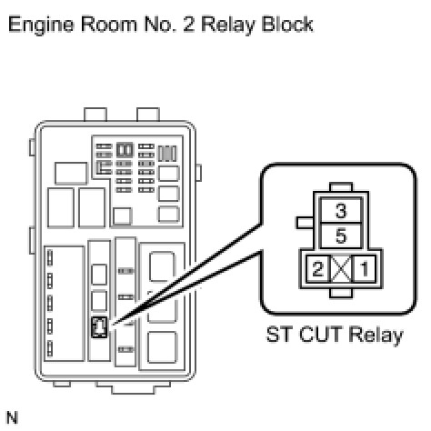 (a) Remove the ST CUT relay from the engine room No. 2 relay block.