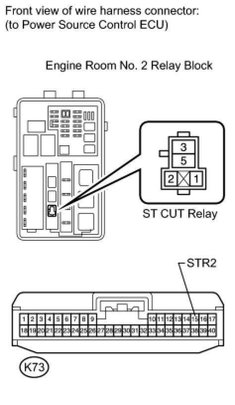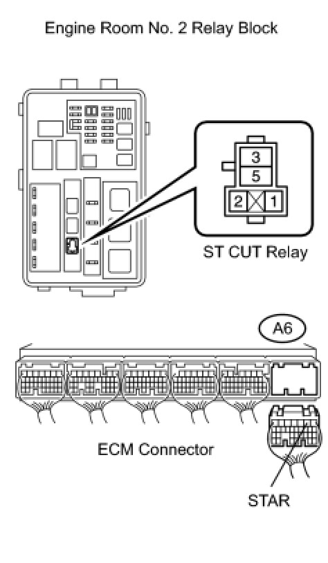 (b) Remove the ST CUT relay from the engine room No. 2 relay block.