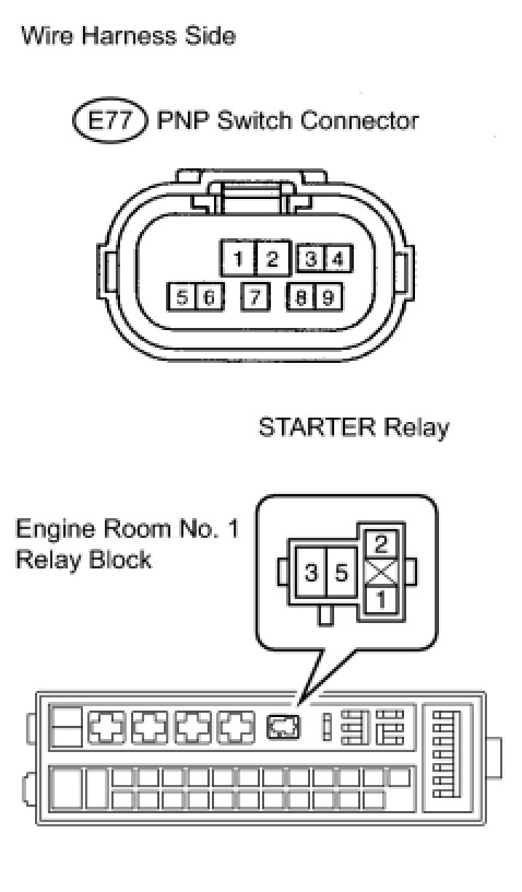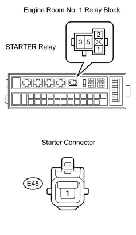 (2) Remove the starter relay from the engine room No. 1 relay block.