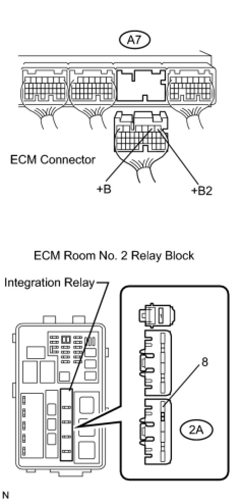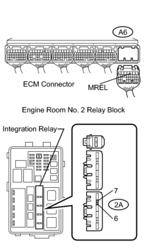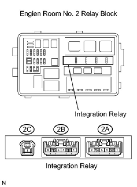 (1) Remove the integration relay from the engine room No. 2 junction block.