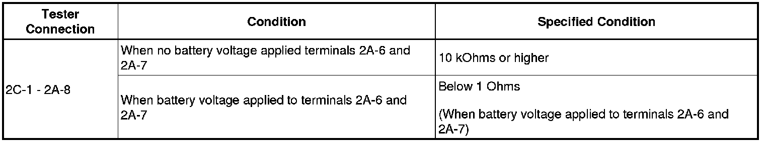 (2) Measure the resistance according to the value(s) in the table below.