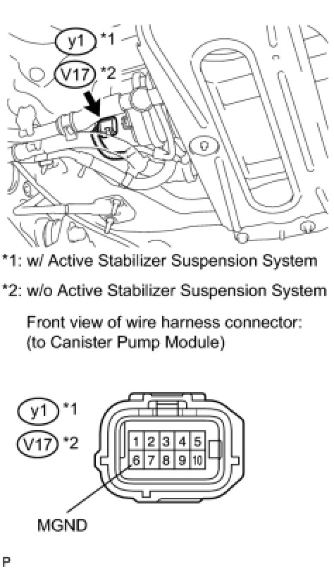 (c) Measure the resistance between MGND terminal of the canister pump module connector and the body ground.