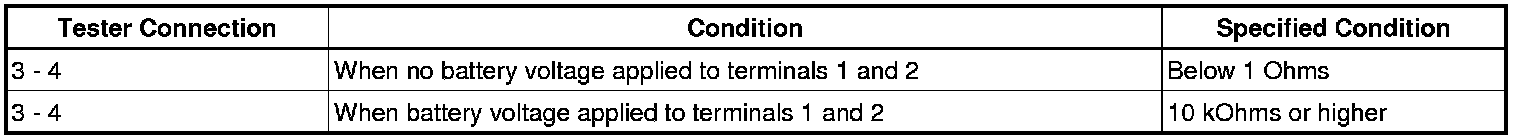 (1) Apply battery voltage to both terminals. Check that the pump operates.