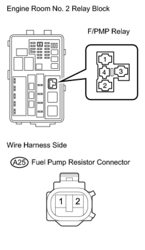 (a) Check the harness and the connectors between the F/PMP relay and the fuel pump resistor.