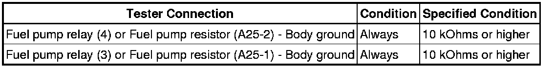 (b) Check the harness and the connectors between the fuel pump and body ground.