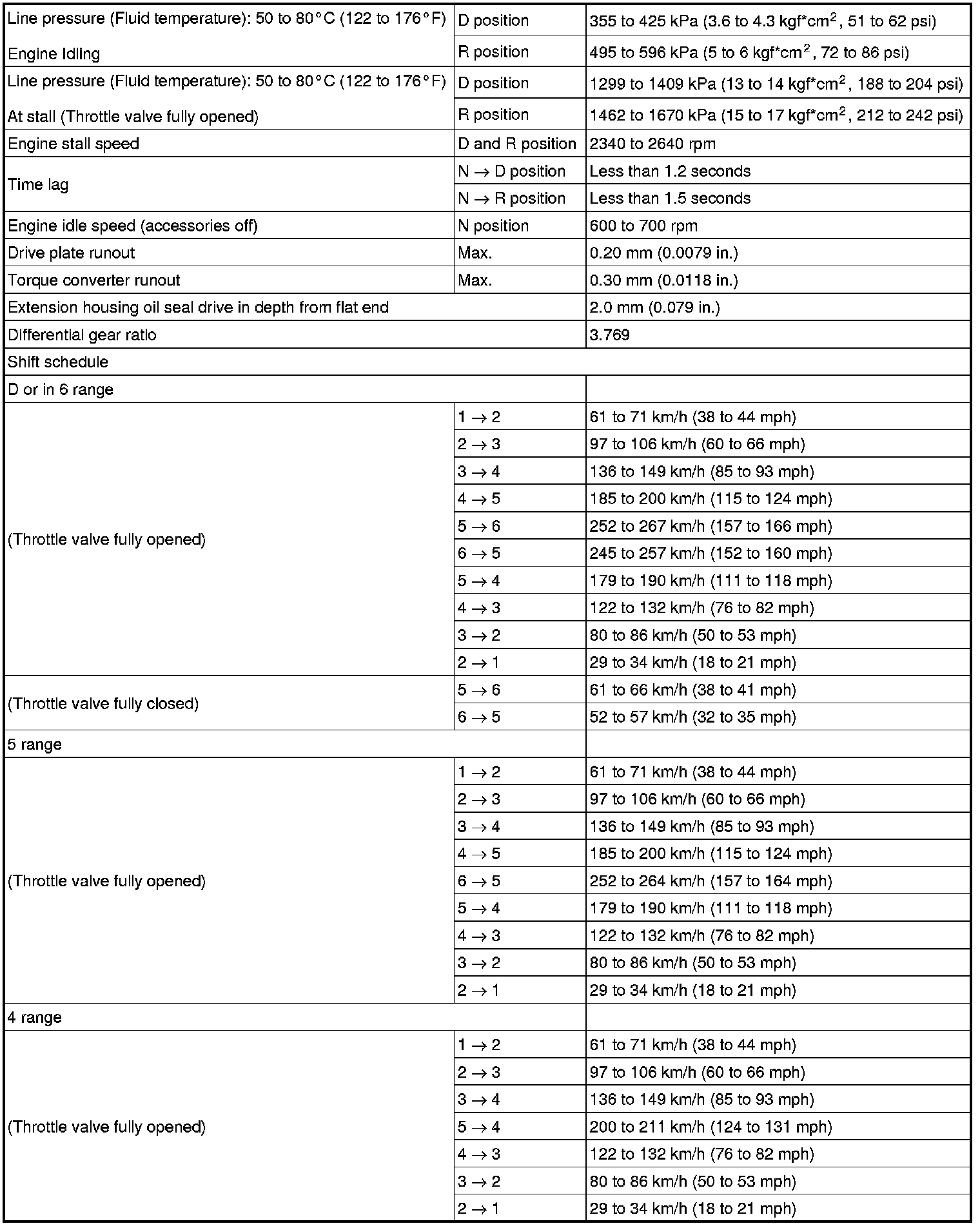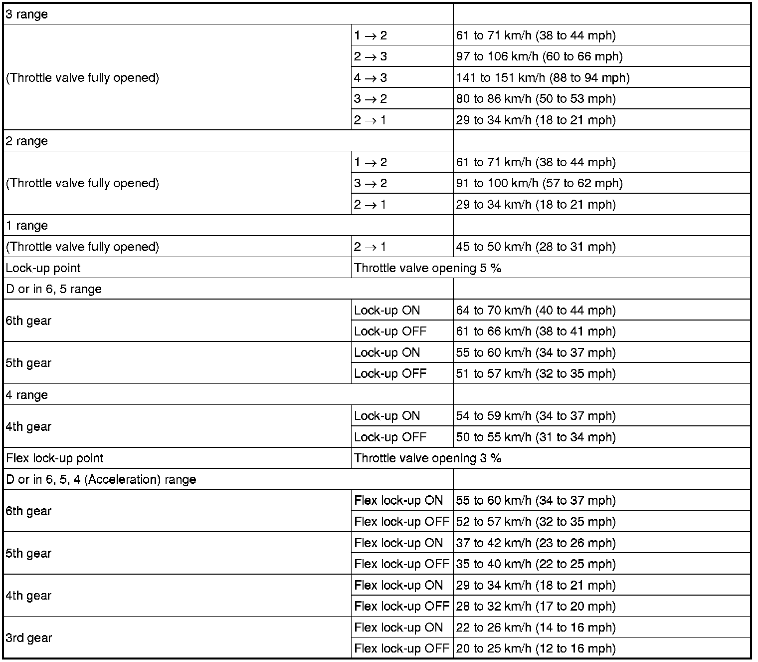 - All shift point values indicated in the above tables are actual values. Therefore, if checking a shift point with a chassis dynamometer, keep in mind that there is a range of error in the chassis dynamometer indication.