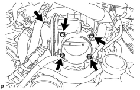 Intake ManifoldTemporarily install the intake manifold with the 2 nuts and 8 bolts. Then tighten the 2 nuts and 8 bolts uniformly in the order shown in the illustration.