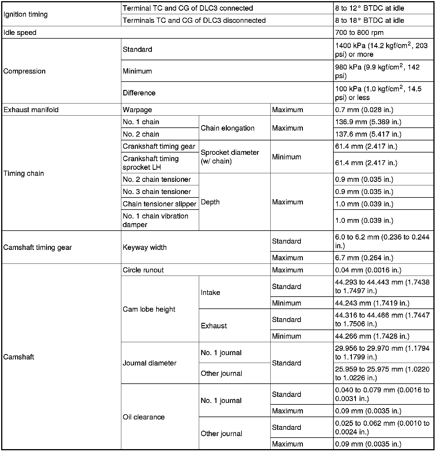 SERVICE SPECIFICATIONS: 1UR-FSE ENGINE MECHANICAL: SERVICE DATA