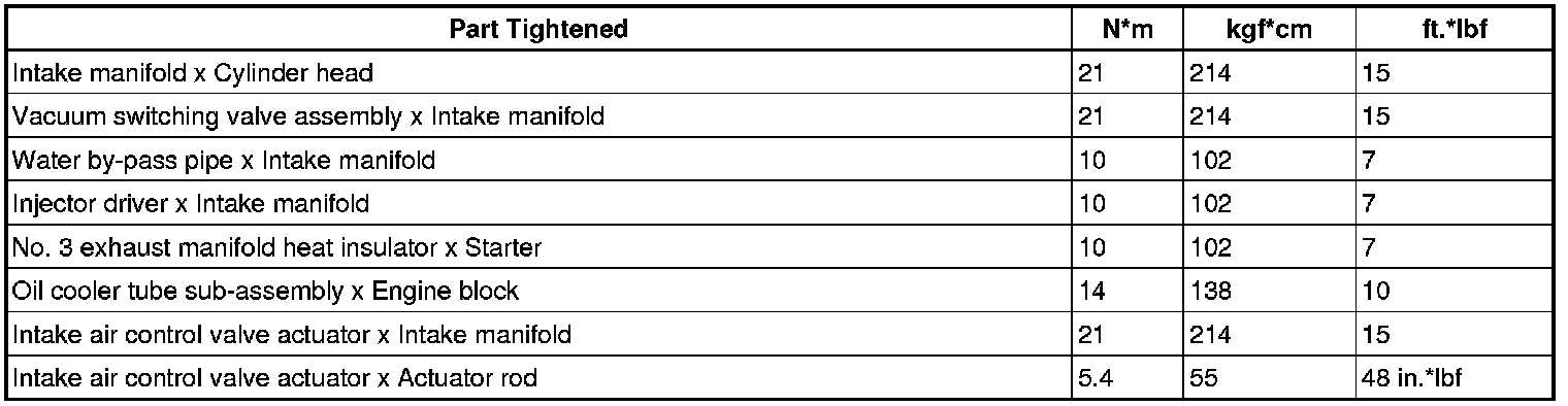 SERVICE SPECIFICATIONS: 1UR-FSE INTAKE: TORQUE SPECIFICATIONS