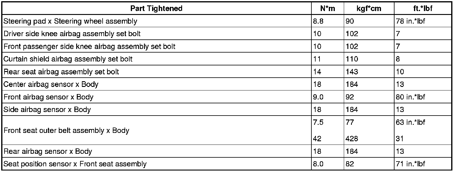 SERVICE SPECIFICATIONS: SUPPLEMENTAL RESTRAINT SYSTEM: TORQUE SPECIFICATIONS