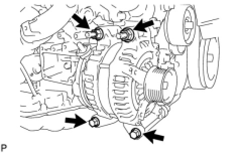 (b) Install the generator with the 2 bolts and 2 nuts.
