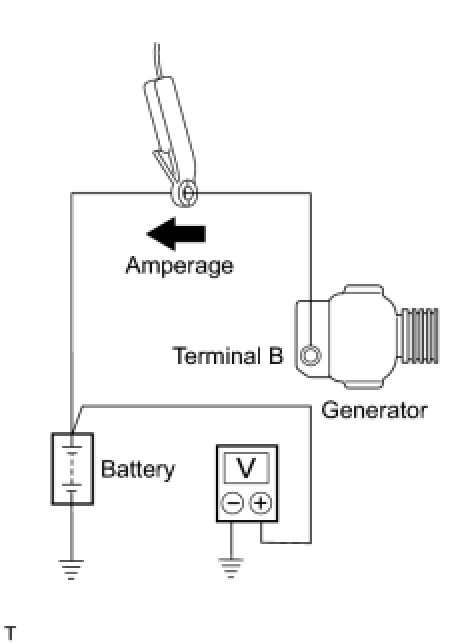 - If the ammeter reading is less than the standard amperage even though the battery is fully charged, the load is not sufficient. Therefore, operate the wiper motor, rear window defogger, etc. to increase the load, and perform the measurement again.
