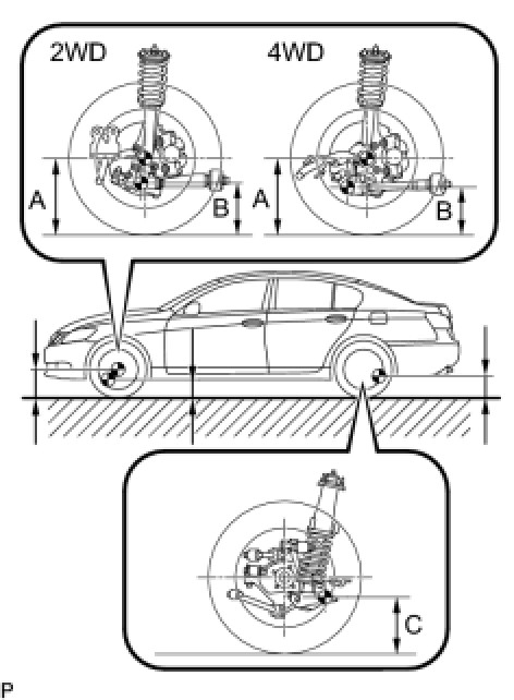 Before inspecting the wheel alignment, adjust the vehicle height to the specified value.