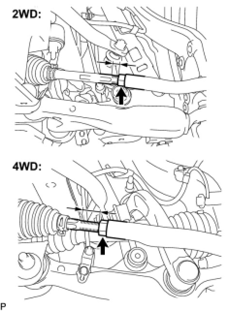 (1) Extend the shorter rack end if the measured toe-in deviates toward the inner-side.