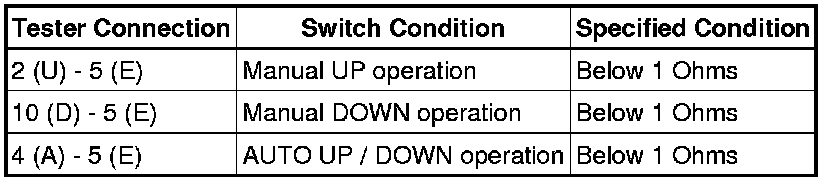 If the result is not as specified, replace the power window switch.