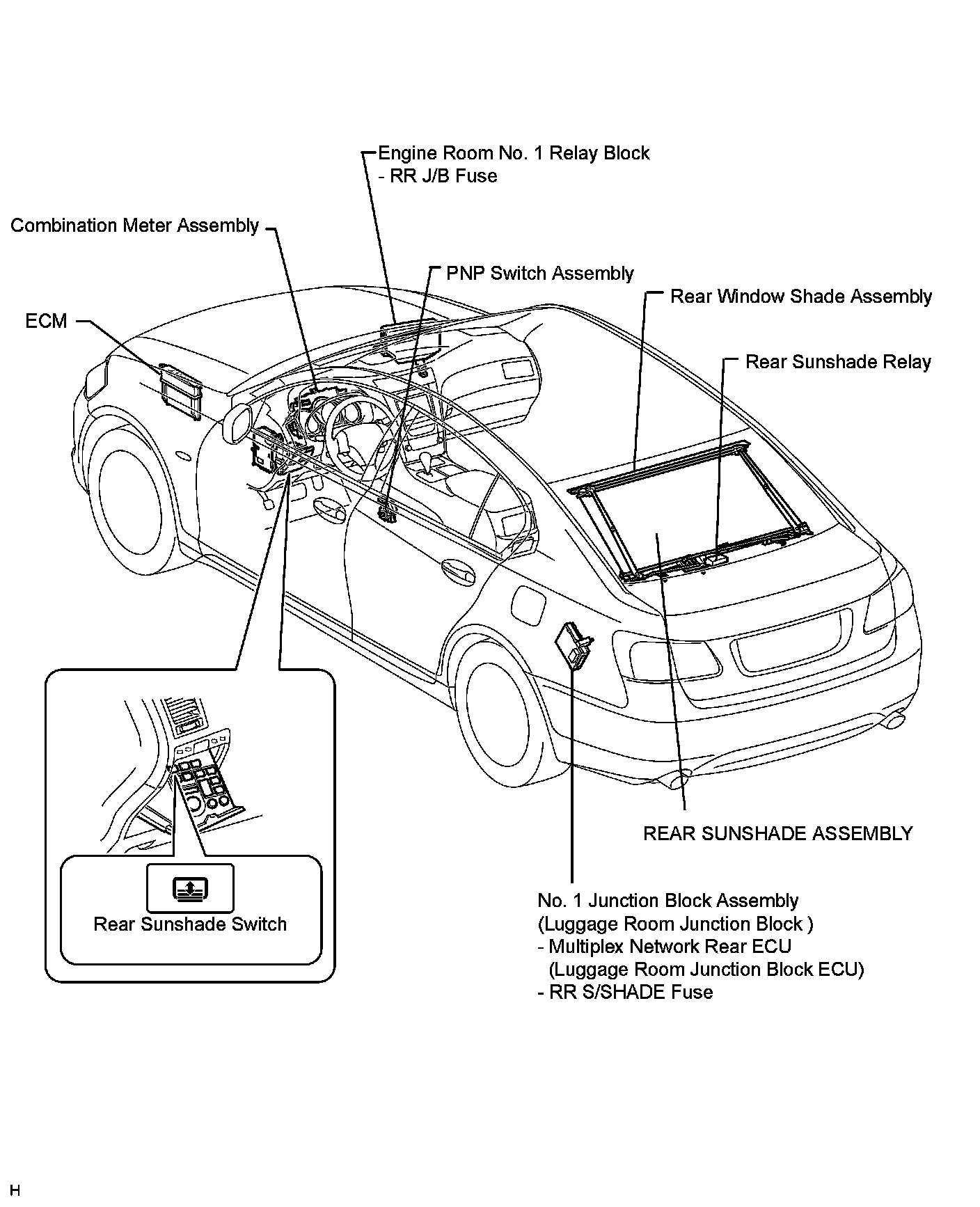 INTERIOR: REAR SUNSHADE SYSTEM: PARTS LOCATION