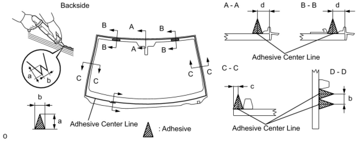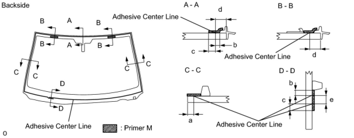 (a) Apply Primer G to the glass where the glass adhesive dams will be installed.