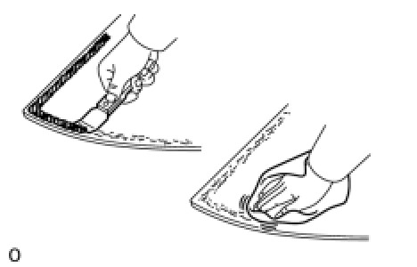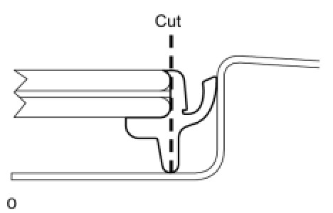 (1) On the contact surface of the vehicle body, use a knife to cut away excess adhesive as shown in the illustration.