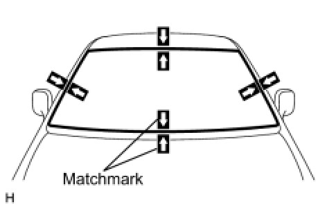 (f) Place matchmarks over the glass and vehicle body on the locations indicated in the illustration.