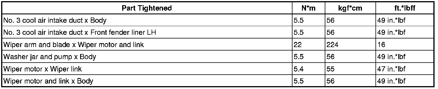 SERVICE SPECIFICATIONS: WIPER AND WASHER: TORQUE SPECIFICATIONS
