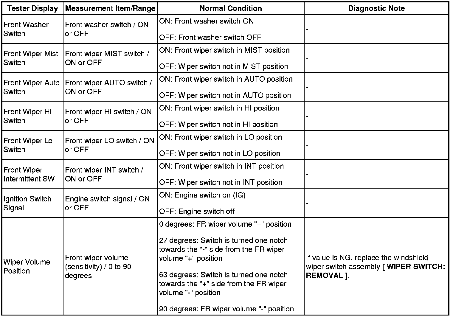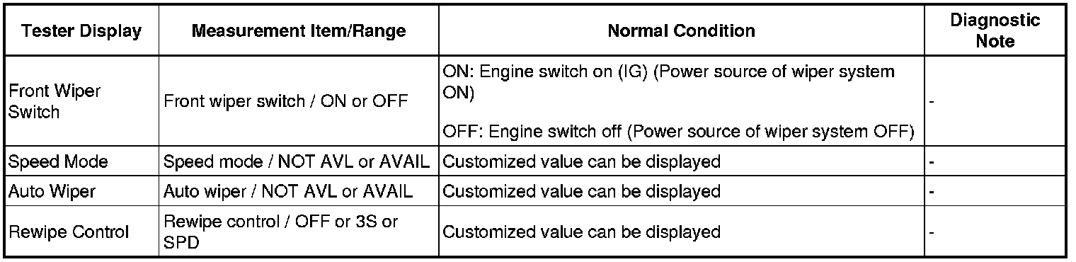 WIPER AND WASHER: WIPER AND WASHER SYSTEM: DATA LIST / ACTIVE TEST