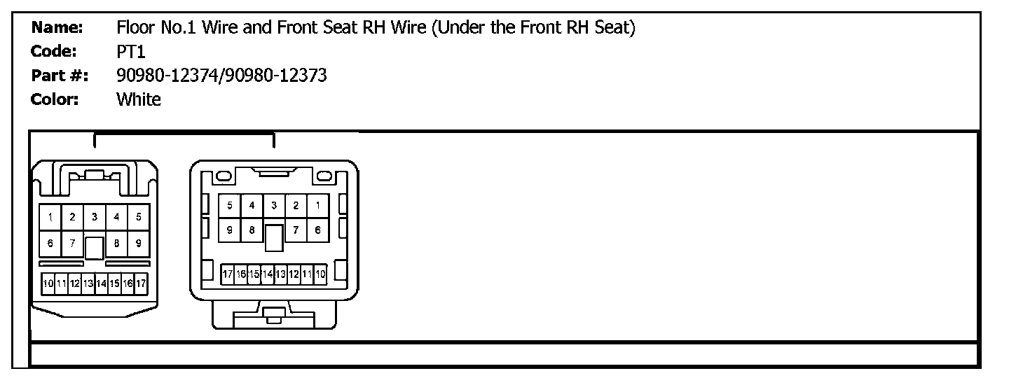 PT1 (Floor No.1 Wire And Front Seat RH Wire (Under The Front RH Seat)):