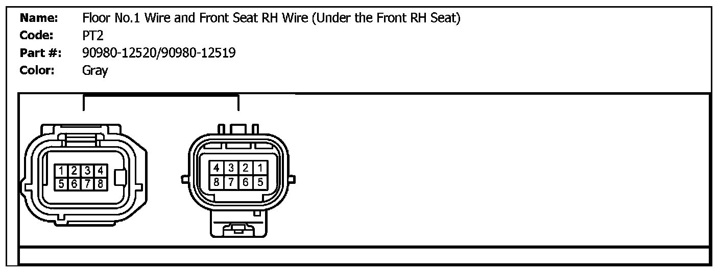 PT2 (Floor No.1 Wire And Front Seat RH Wire (Under The Front RH Seat)):